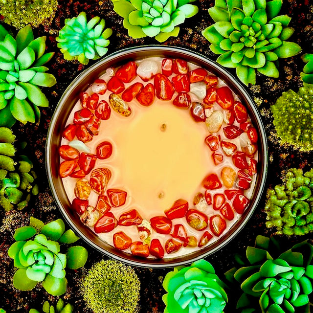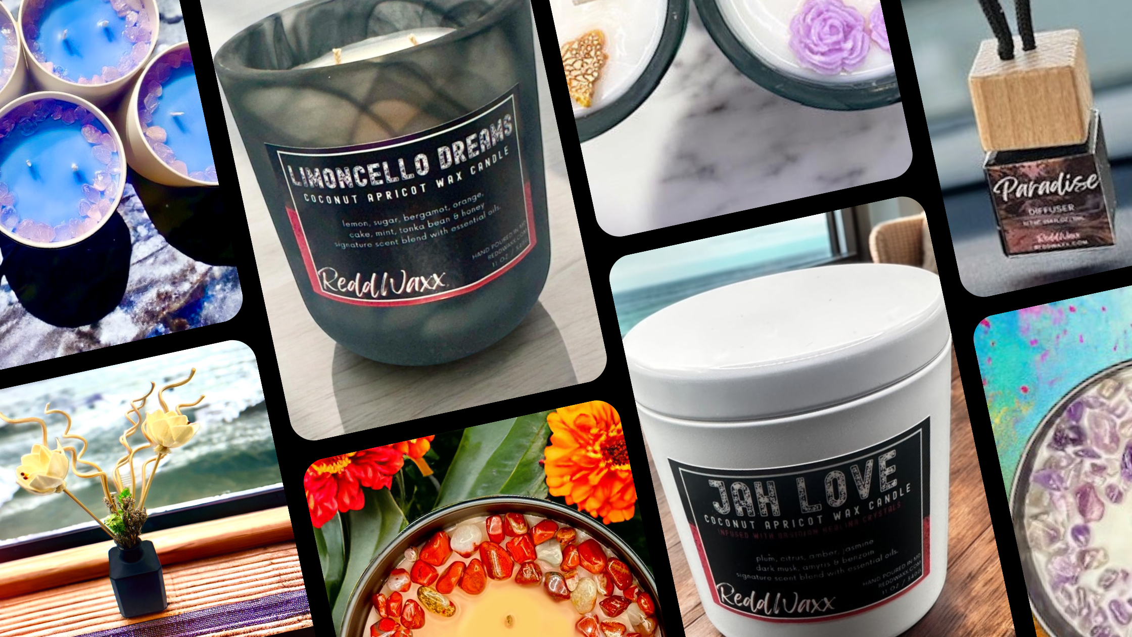 Discover the magic of ReddWaxx Healing Crystal-Infused Candles. Hand-poured with clean-burning coconut apricot wax, each candle is enhanced with healing crystals and soothing scents designed to uplift your energy and create balance. Beautifully crafted for both wellness and ambiance, these candles turn any space into a sanctuary of peace and positivity.